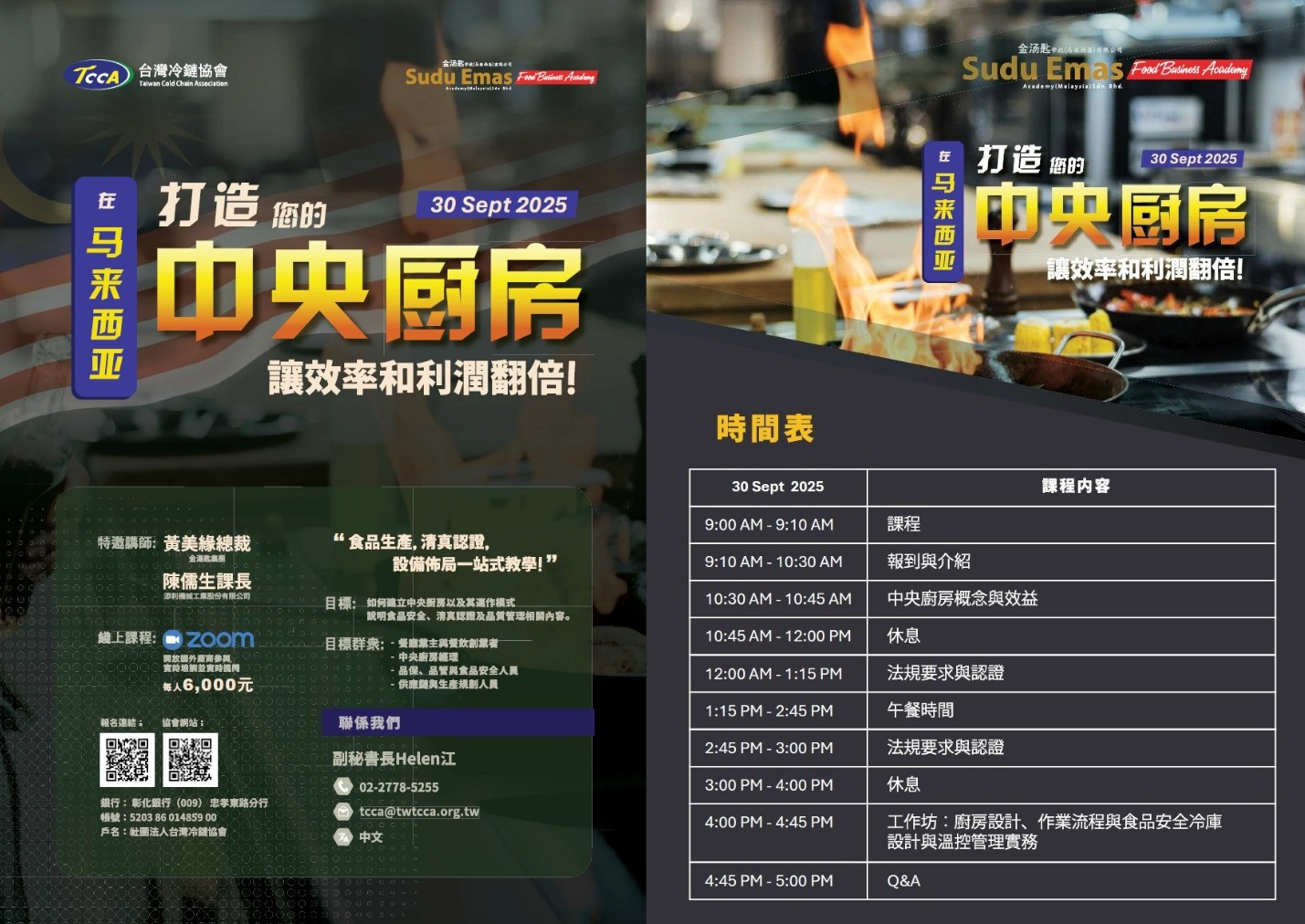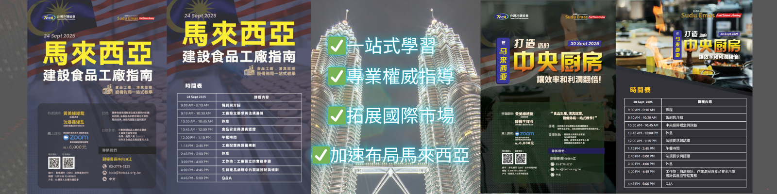 為協助台灣食品加工業者快速掌握馬來西亞清真食品市場的發展契機,台灣冷鏈協會特別與馬來西亞 金湯匙集團(Golden Spoon Group) 攜手合作,推出「建設食品工廠指南 & 打造中央廚房」一站式線上教學。