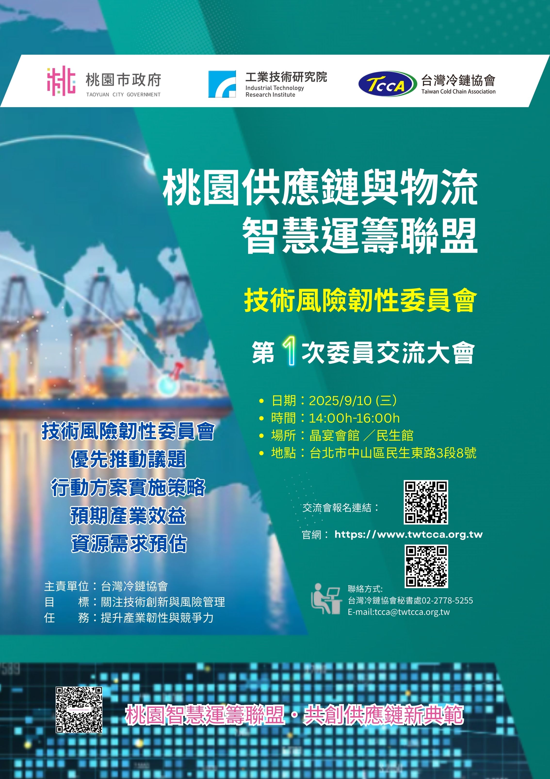 本會加盟 "桃園供應鏈與物流智慧運籌聯盟" 承接"技術及風險韌性委員會"要務。