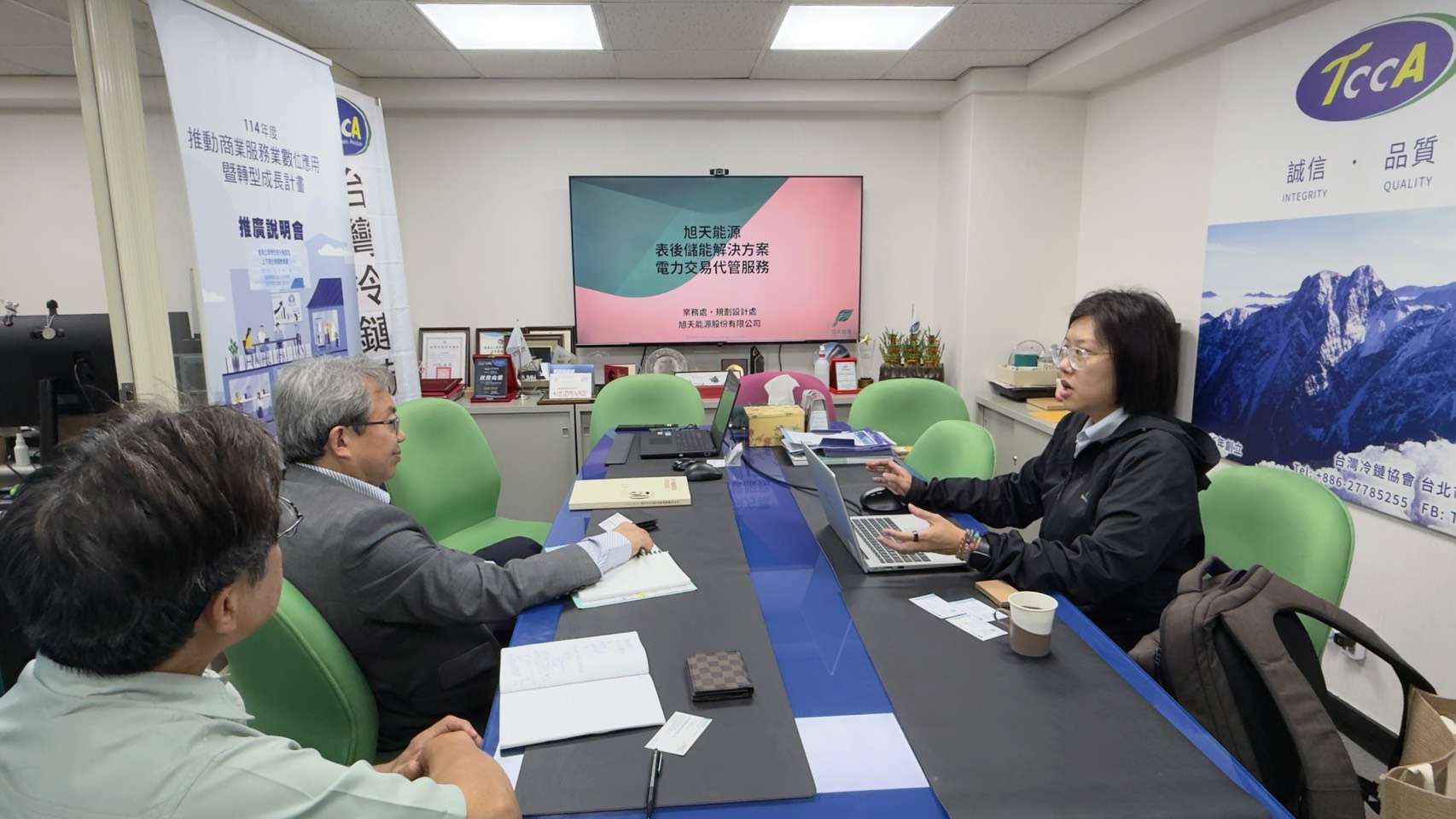 旭天能源股份有限公司鄭鈺賢業務經理造訪協會,是遠傳集團 100% 持股之能源子公司,專注於提供企業全方位的綠能轉型解決方案。