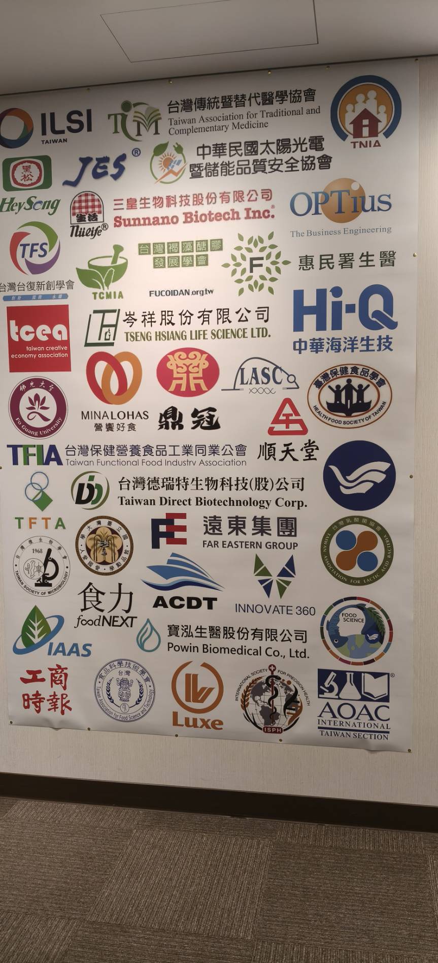 協辦單位:臺灣保健食品學會、國立臺灣大學食科所、國立臺灣海洋大學、ILSI臺灣國際生命科學會、臺灣微生物學會、國際精準健康學會(ISPH)、新加坡國際農業永續學會(IAAS)、臺灣食品科學技術學會、臺灣保健營養食品工業同業公會、臺灣中藥工業同業公會、臺灣乳酸菌協會、臺灣公定分析化學家協會、臺灣食品技師協會、中華新住民關懷協會、臺灣台復新創學會、日本OPTIUS INC、新加坡加速器Innovate 360、ACDT臺灣遊輪產業發展協會、TATCM臺灣傳統暨替代醫學協會、臺灣褐藻醣膠發展學會、中華民國太陽光電暨儲能品質安全協會、臺灣創意經濟產業發展協進會、食力foodNEXT、工商時報